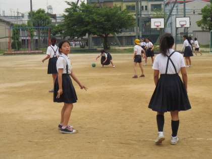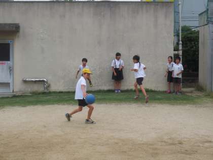 放課後は4時まで運動場で遊べます。(水曜日以外) ボール運動で元気に遊んでいる高学年をみていると、こちらも楽しくなってきました。