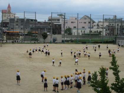 雨上がりの久しぶりの運動場。たくさんの児童が広い運動場をめいいっぱいに使って遊んでいました。