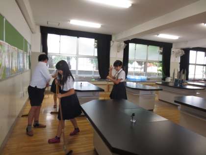 6年生が理科室の「そうじ」をしています。他の場所も子どもたちは、協力して清掃活動をしています。