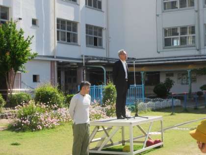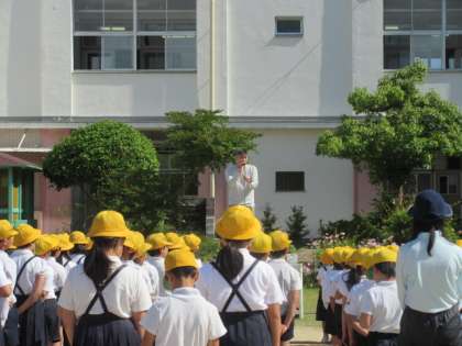 校長先生のお話は、「一日一日、少しずつみんなは成長しているので、すぐにはできるようにならないけど、あきらめずに、一日一日を大切にがんばりましょう。」とのことでした。看護当番の木野本先生からは「やさしい言葉づかいをしよう」という週目標のお話がありました。