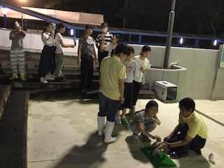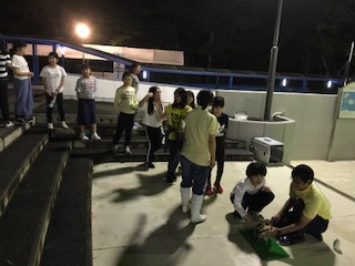 マリンランドは、普段夜は開いていませんが、巽南小学校の貸切で、昼間の水族館では体験できないことをいろいろ体験することができました。