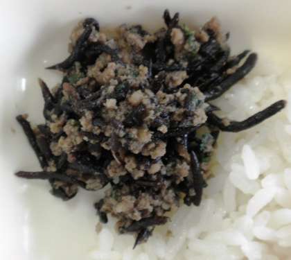 牛ひき肉、ひじきを甘辛く味付けし、しその風味を加えています。ご飯が進む一品です。