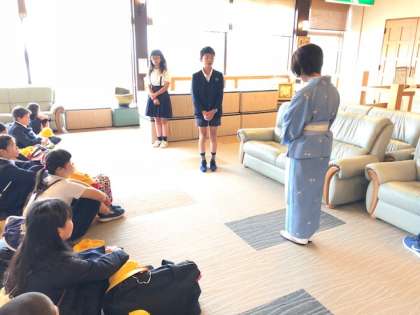 部屋の片づけも終わました。閉舎式の様子です。代表の人が宿舎の方にお世話になったお礼のあいさつをしています。