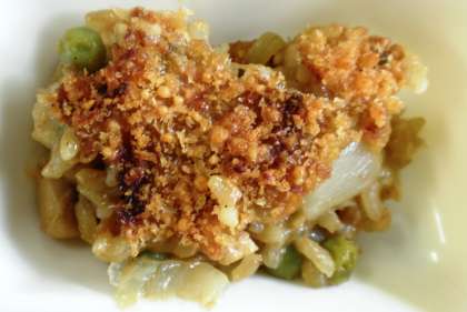 鶏肉、米、たまねぎ、グリンピースの入ったカレードリアです。