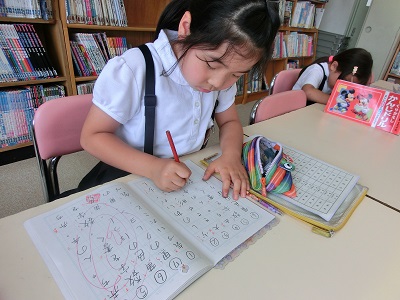 火曜日と木曜日の放課後は、図書室でセルフスタディを行っています。火曜日は徳重先生との学習です。