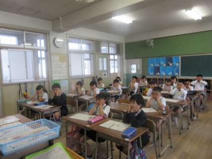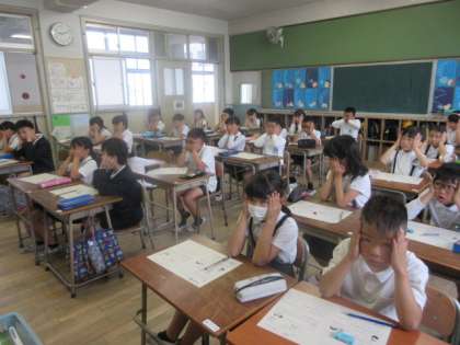 先週の5月30日水曜日に、3年生は松廣先生の食育の授業を受けました。よく噛んで食べることが歯にもよいということを勉強しました。虫歯になりにくく、脳の働きをよくしてくれます。みんなで30回口を動かし、噛み続けました。