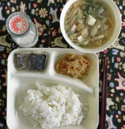 さごしの塩焼き、五目汁、切り干しだいこんのいため煮、ご飯、牛乳