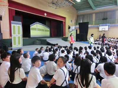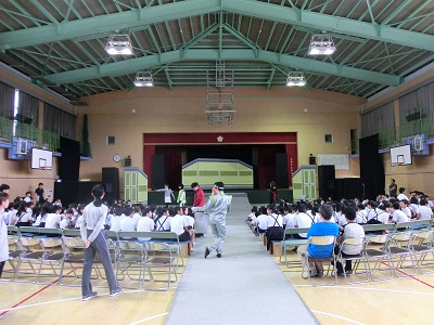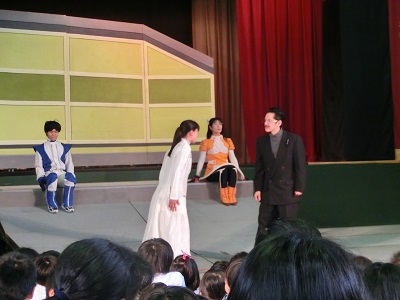 いつもの見慣れた講堂とは違う雰囲気と劇団の方が演じられる迫真の演技を見て、みんな劇に見入っていました。