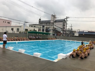 1・2年生は天候の影響でなかなかプールに入れない日が続きましたが、6月21日に今年度初めてプールに入りました。
