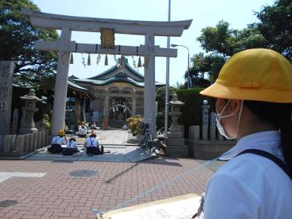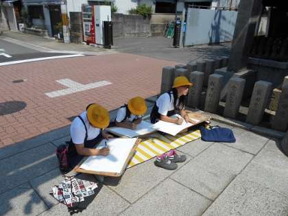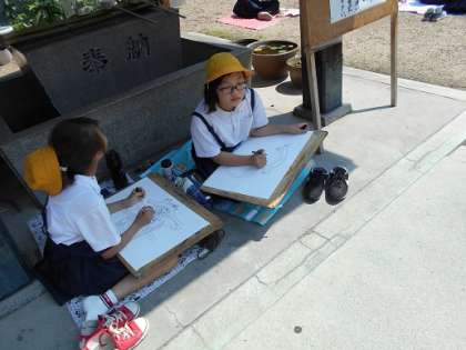 晴れていて気温が高く、汗ばむ陽気でしたが、みんな神社の様子をじっくり見ながら一生懸命に絵を描いていました。