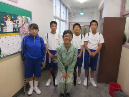 二日間あいにくの雨のお天気でしたが、みんな一生懸命に働いていました。最後に管理作業員の青木さんと記念撮影しました。