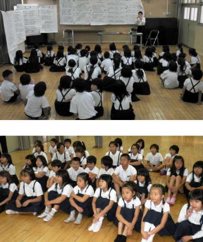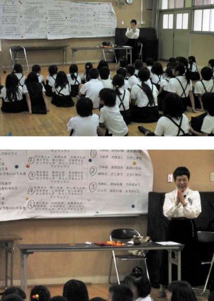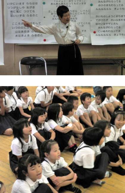 児童のよく知っている曲を、テンポよくハーモニカで演奏してくださいます。