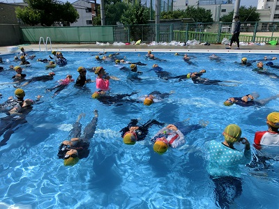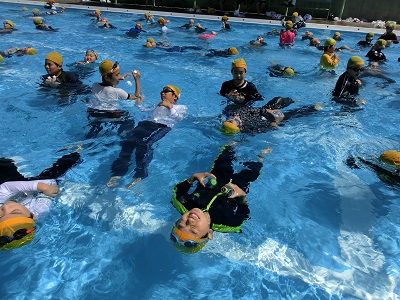 学習の最後には、身近にあるものを使って水に浮かぶ練習をしました。