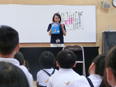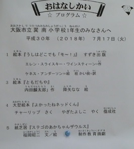 生野図書館からあじさいクラブの方が来られて、色々な絵本や紙芝居などを読み聞かせしてくださいました。