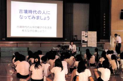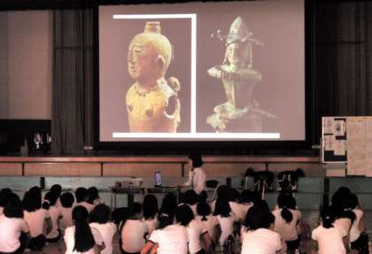 来週27日に社会見学で訪れる「近つ飛鳥博物館」から、6年生に歴史学習の出前授業に来られました。