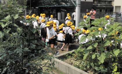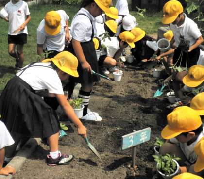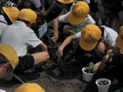 3年生は、植木鉢で育てたヒマワリ・ホウセンカ・マリーゴールドを植え替えしました。
