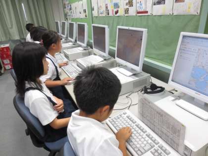 ローマ字入力に慣れてきたとはいえ、キーボードへの打ち込みには少し時間がかかります。でも、どの子も集中して取り組んでいます。