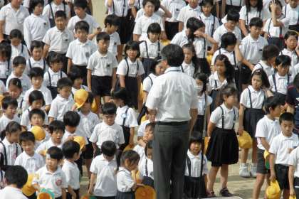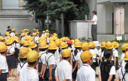 月曜日の朝は全校朝会です。