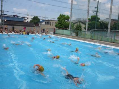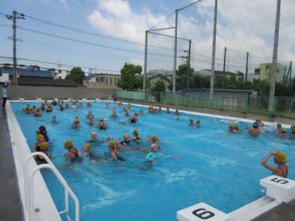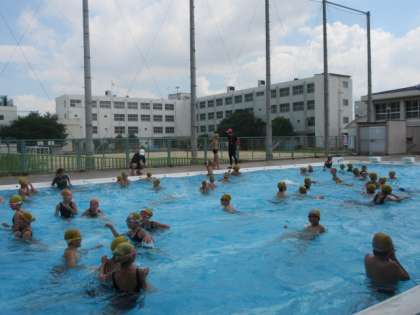 プールに入る前と入った後は、しっかりと水分を取るようにしましょう。是非、水筒を持って来て下さい。明日は、1〜3年生のプール開放をホームページにアップします。