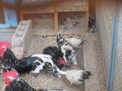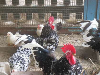 新しくなかまになった「白チャボ」とも、すぐになかよくなりました。食べる時も、ねる時も、遊ぶ時も、もちろんみんななかよくしています。