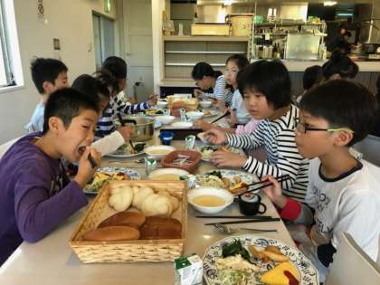 朝ごはんは活動班のみんなで一緒に食べます。