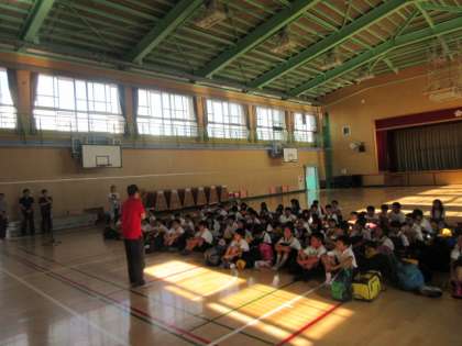 5年生代表のあいさつがあり、お世話になった先生方にお礼を言いました。最後は阪口先生のあいさつです。