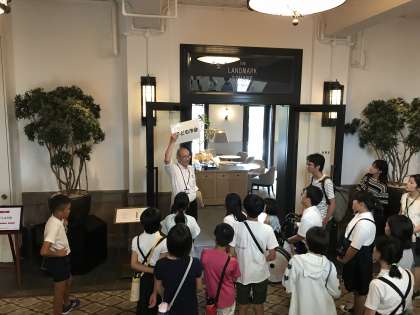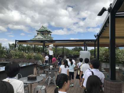7月30日に6年生2人が、大阪城公園(ミライザ大阪城など)の施設見学に行きました。最初に全体で施設についてのお話を聞いて、その後に、説明を受けながら施設を周って見学を行いました。