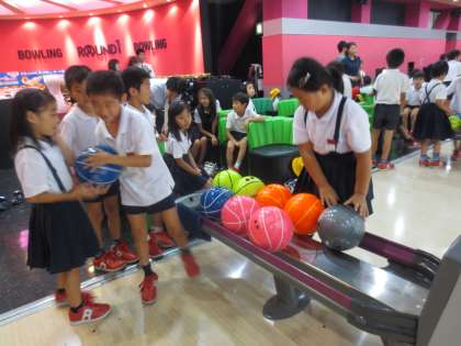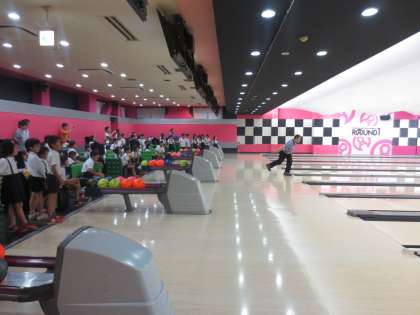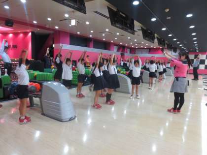 準備運動をしっかりとしました。プロボーラーの方の投げ方を見学しました。ゲームをする前に、全員が練習で投げさせてもらいました。