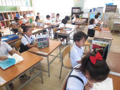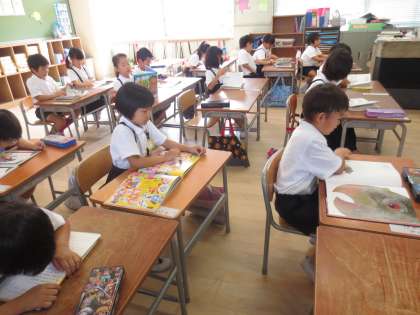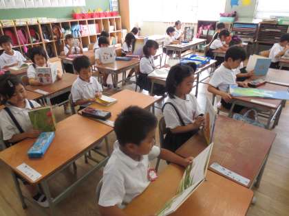 火曜日と金曜日の始業前は、読書タイムです。全学級が自主的に読書をしています。