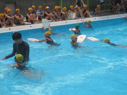プール開きから3週間目になり、どの子もプールに慣れてきたようです。先生の声かけに一人一人が、とてもよい動きをしていました。