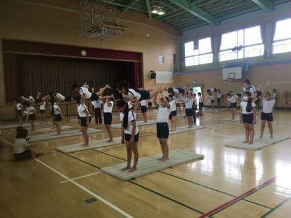 多くの先生が横について、いろんな技の練習をマットの上でしていました。少しずつ自信もついてきました。