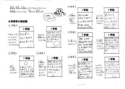 保健の学習記録をみて おうちの人からひとことです。 ほけんだより9月号裏面