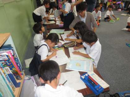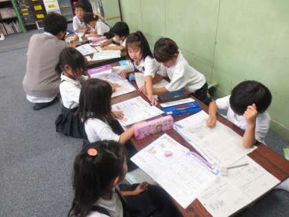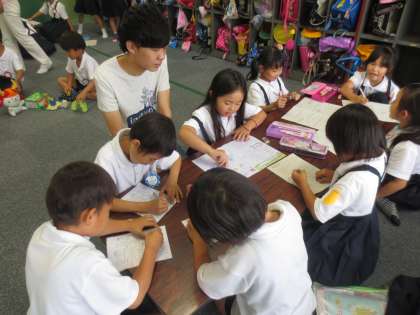 6時間目の授業中で、「いきいき活動」には1年生だけが参加していました。テーブルの上には宿題が広げられていて、どの子も集中して勉強をしていました。