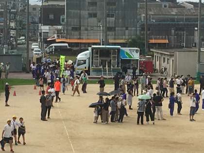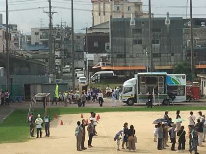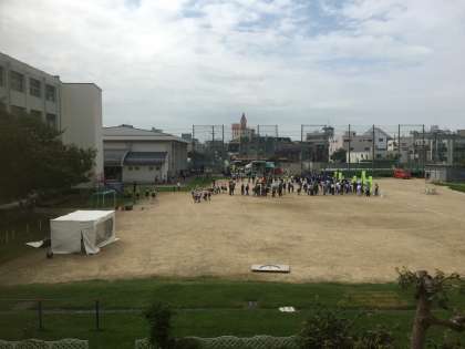 9/15 地域防災訓練/土曜授業(7)「町会ごとの避難の様子(運動場)2」