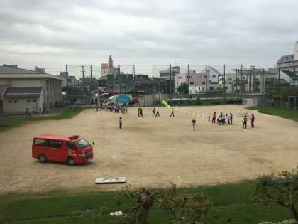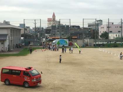 町会ごとに小学校に避難してきています。運動場に入ったら、町会と小学生が分かれて並びます。