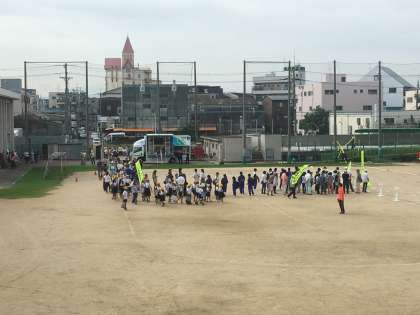 9/15 地域防災訓練/土曜授業(6)「町会ごとの避難の様子(運動場)1」