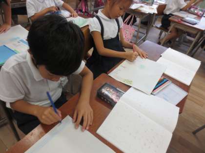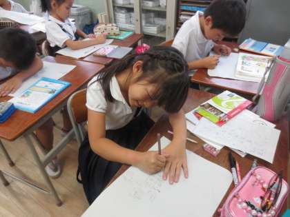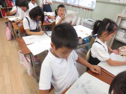自分でお話をつくる学習は、考えを思い思いに表現できるので、とても楽しそうでした。