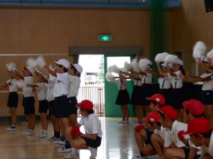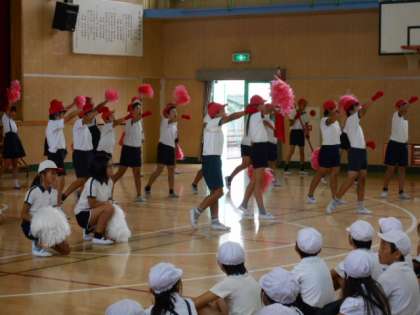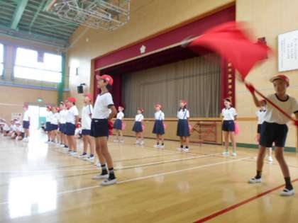 応援団の児童が日ごろの練習の成果を見せてくれました。