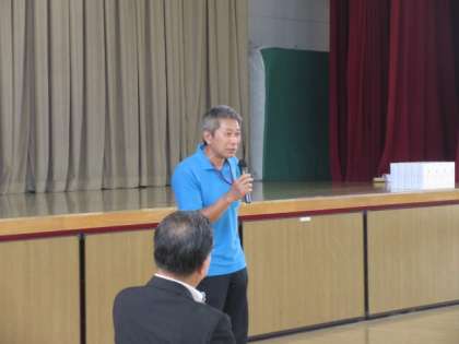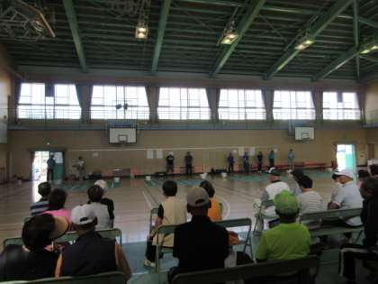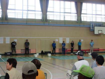 大阪市スポーツ推進委員の岩井さんがルール説明等をお話しました。審判、得点担当は、青少年指導員、青少年福祉委員、スポーツ推進委員の方々が担当されました。ご協力ありがとうございました。