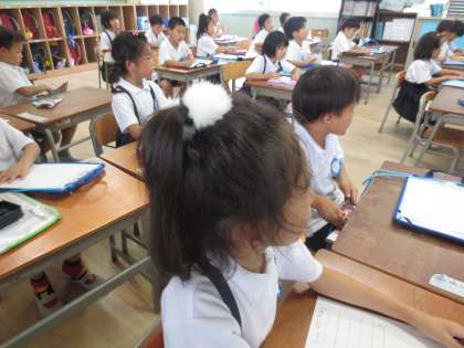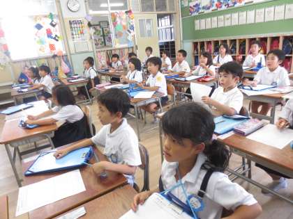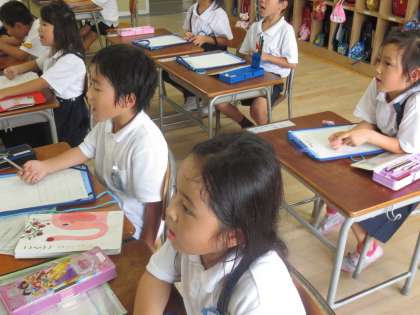 これから「アサガオ」の観察にいくところです。しっかりとお話を聞き、どの子も学習内容がよくわかっているようでした。