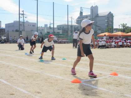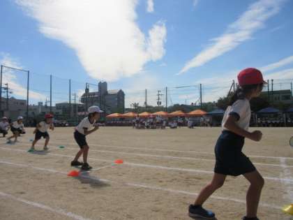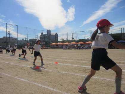 2年生の「ラン!ラン!!ラン!!!」(徒競走)です。みんながんばって走っていました。スタートの仕方が上手でした。