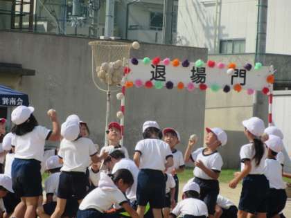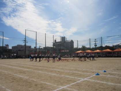 1年生の「たまいれ」です。本当にたくさんの玉をかごに入れることができていました。すばらしい!お片付けも早かったです!