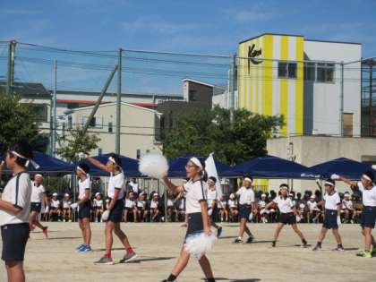 集会委員とオーディションをくぐりぬけた気合いの入った応援団たちは、毎朝、練習を積み重ねて、運動会当日を迎えました。全力でさまざまな応援をしていました。頼もしい格好良い高学年たちです。