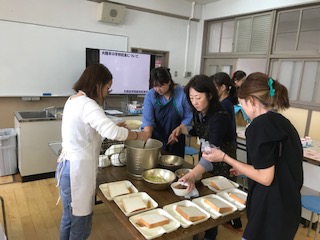 給食委員さんを中心に皆さんで準備・配膳を行い、