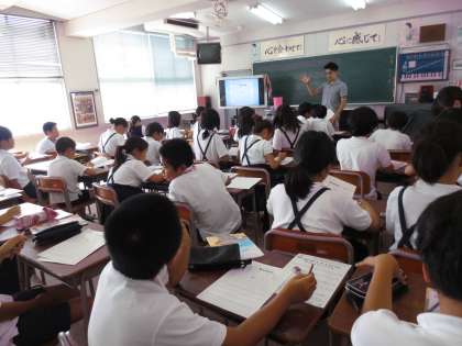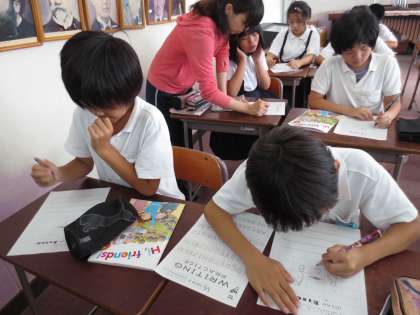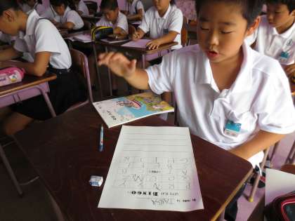子どもたちは集中して、英語ビンゴゲームに取り組んでいました。