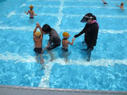 1年生は7月になり水にも慣れてきて、楽しく泳げるようになっています。流石、2年生は水の中でよい動きができ、かなり長く泳げるようになっています。