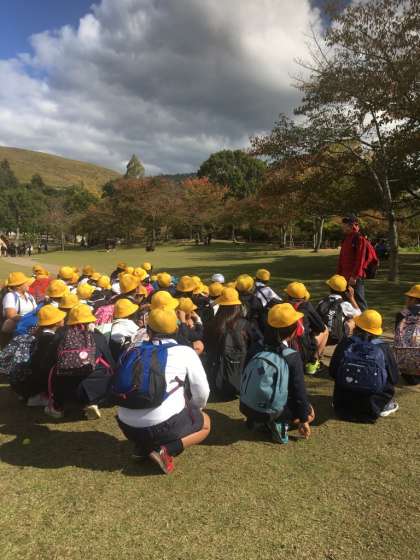 弁当を食べて遊んだあとに集合して、帰り道に興福寺に立ち寄り、五重塔の前で休憩をしました。電車の中でのマナー等、さすが高学年という振る舞いで、とても落ち着いていて素晴らしかったです。