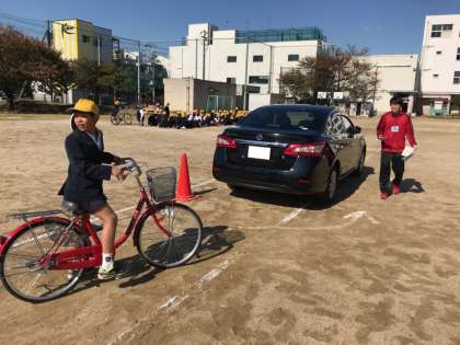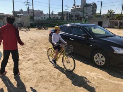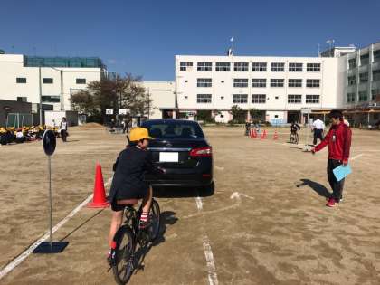 普段は自転車に乗りなれている5・6年生ですが、改めて町の中に潜んでいる危険について学んでいる様子でした。