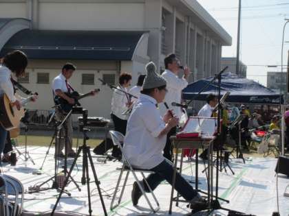 チャイム・アコースティック・クラブさんのバンド演奏の様子です。子どもが知っている曲から大人が懐かしい曲まで、老若男女楽しめる曲目でした。