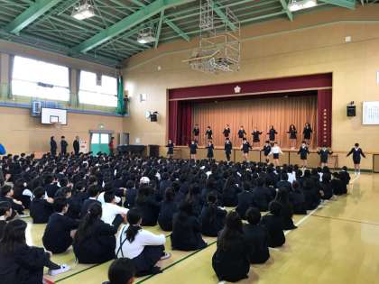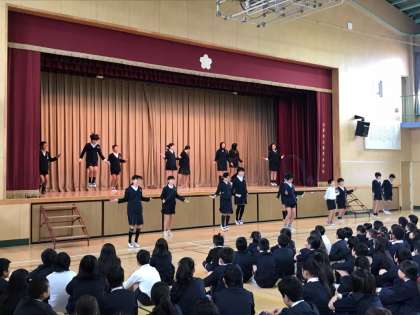 朝会の後半には運動委員会の人たちがなわとびの跳び方の見本を見せました。